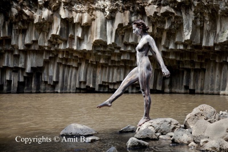 Een bodypainting gewijd aan de schoonheid van de twee wonderlijke dingen: de natuur en de vrouwlichaam. Uitgevoerd tegen Brechat Hameshushim, dat is basalt zeshoekige zwembad in de centrale Golan Heights, Israël