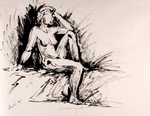 Een bodypainting uitgevoerd op de rotsen van Ein-Hod, Israel