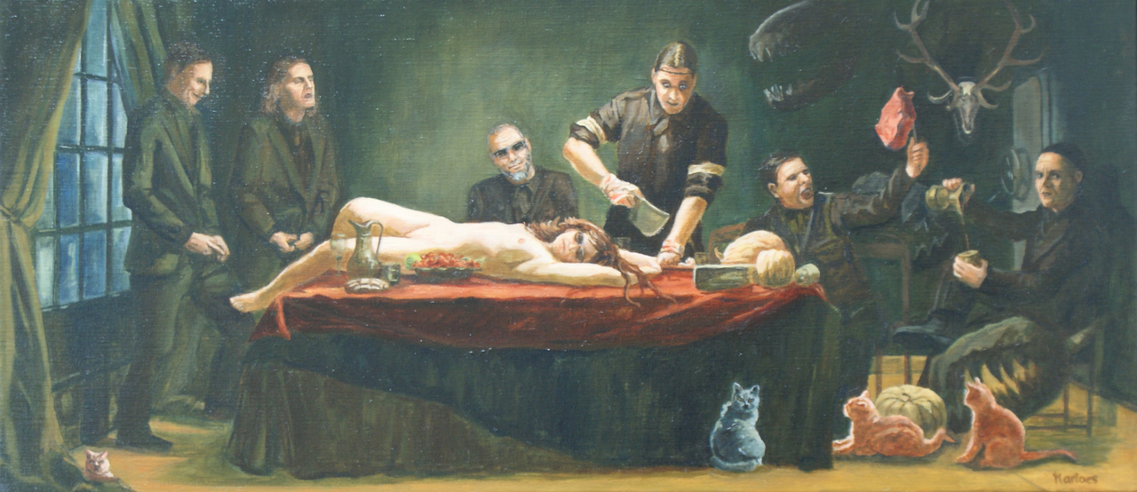 Schilderij Blauw Groen Bruin Olieverf Alle Kleur Muziek Linnen Katten Poezen Berlijn Gotic Music Persoonlijk Duitse Muzikanten Da Techno Fur Ist Liebe Rammstein Metalband Marloesbuigelboering