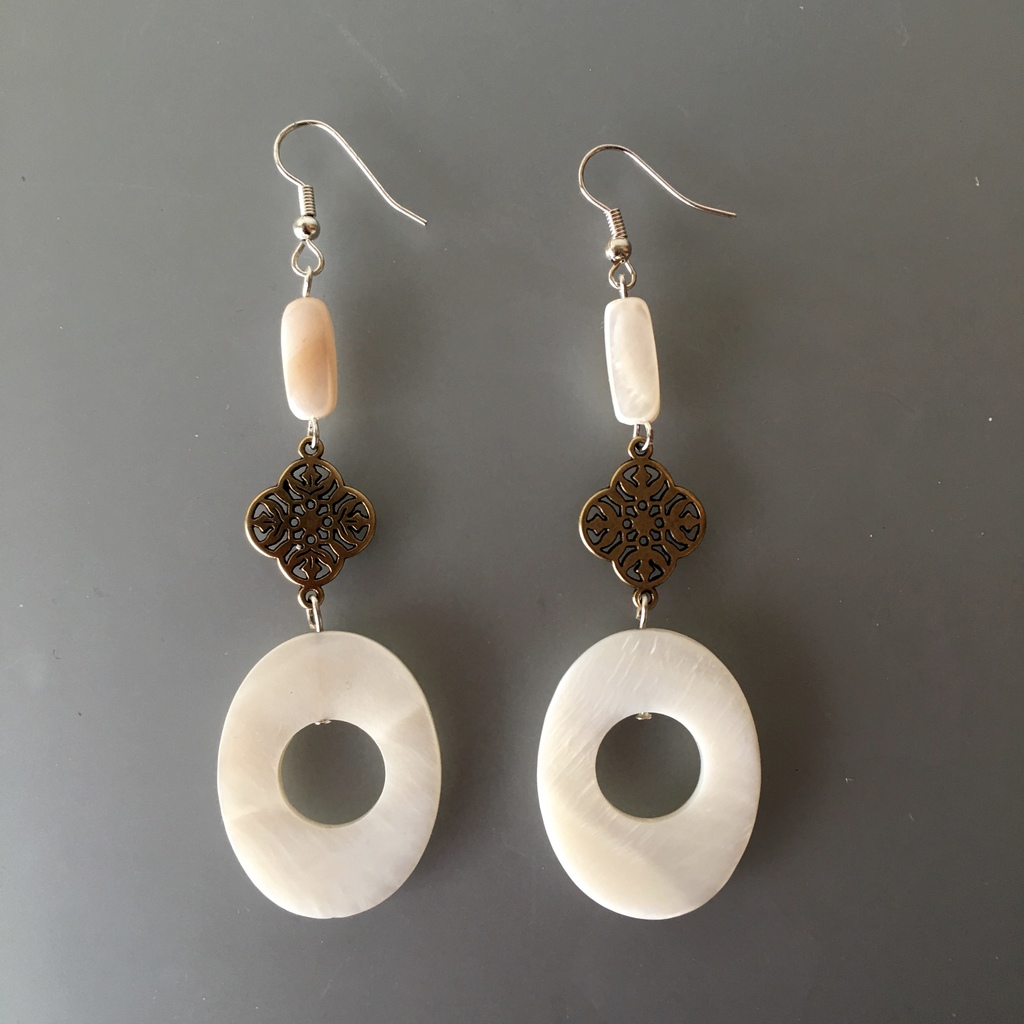 Prachtige oorbellen, parelmoer en parel.