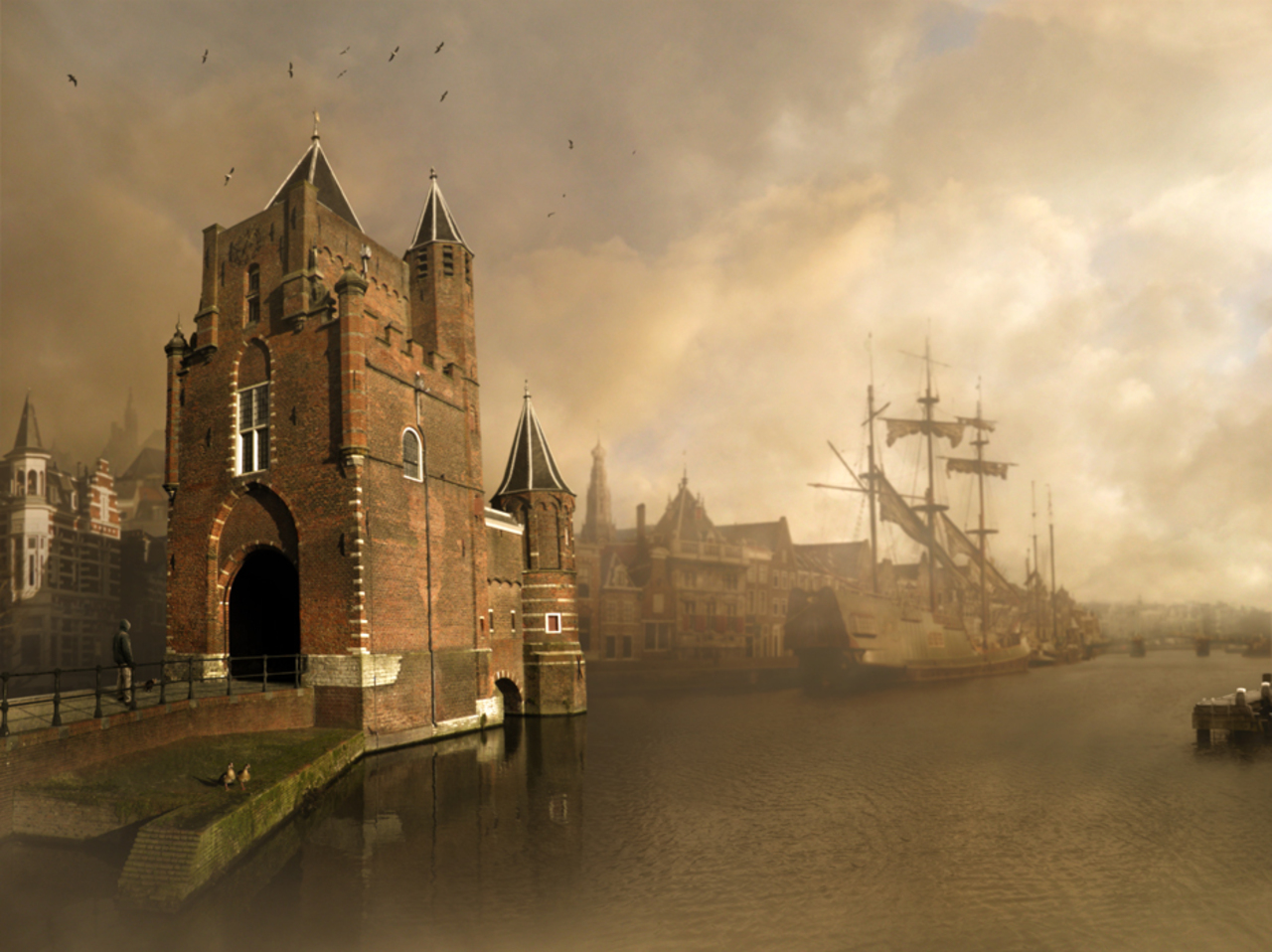 Poes Haven Schip Toren Poort Haarlem