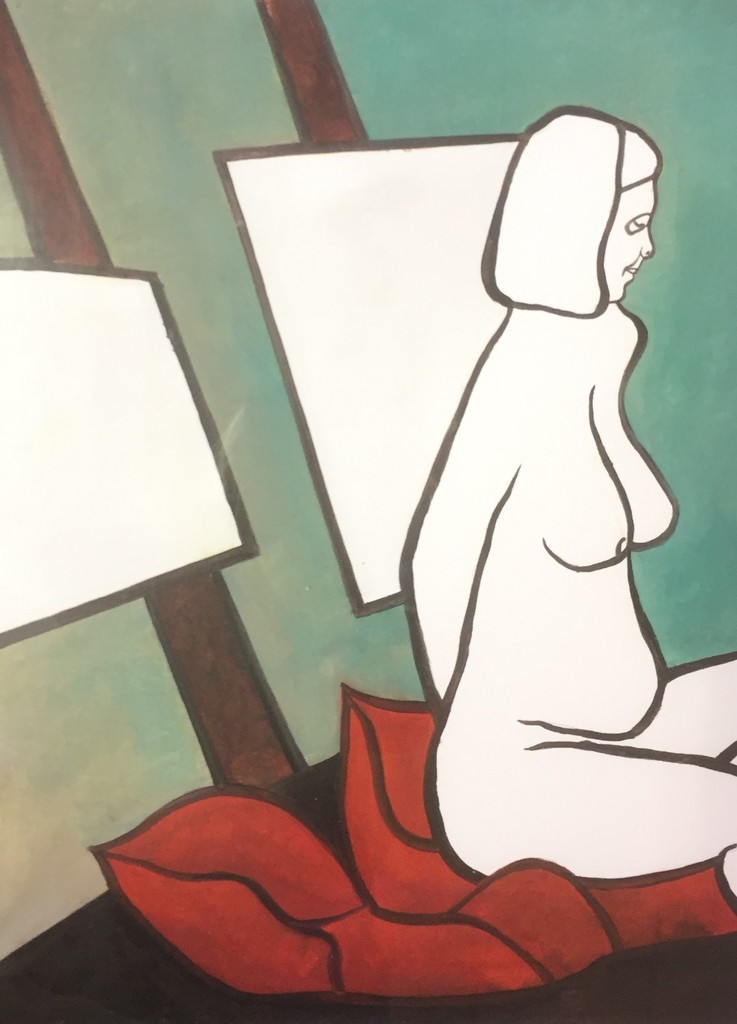 vrouw met blanco schildersdoeken