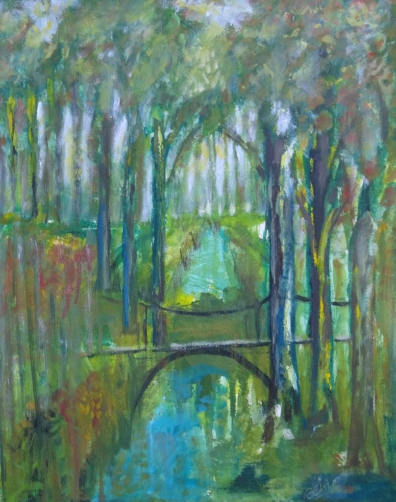 een gietijzeren bruggetje in beginnend herfstlandschap