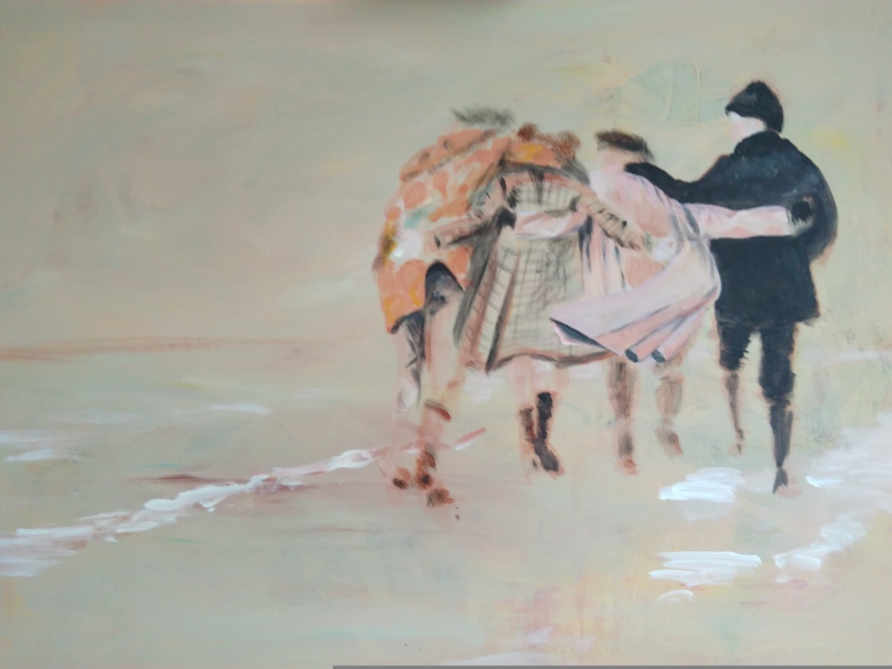 Zee Strand Mensen Acryl Water Vier Samen Delen Ruimte Ontspanning Uitwaaien
