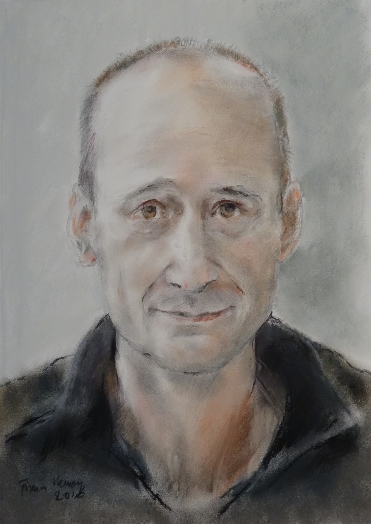 Geboren in 1951. Autodidakt en werkzaam geweest als biologieleraar, vaardig met het krijtje. De houding van het lichaam en de uitdrukking van het gezicht hebben ook buiten het beroep mijn aandacht. Construkties prikkelen mijn fantasie, maar andere onderwerpen en technieken ga ik niet uit de weg. Ik werk vooral in het atelier van De Toets in Zeist. Daar onderhoud ik mijn vaardigheid.