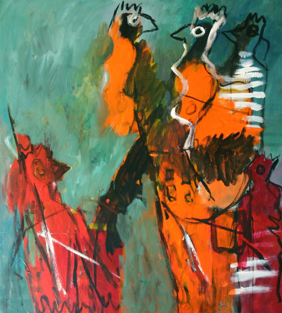 Mijn schilderijen komen tot stand door uit te gaan van een bepaald idee, of een bepaald beeld dat ik voor ogen heb. Soms ga ik alleen uit van bepaalde vormen en kleuren.
