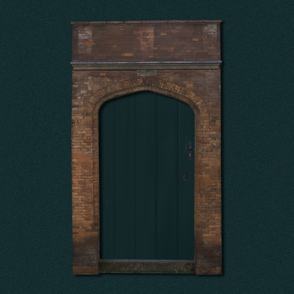 Poortje van geslepen baksteen. Paternosterstraat 1621. Proefstuk voor het Sint Omkommer- of Metselaars-gilde