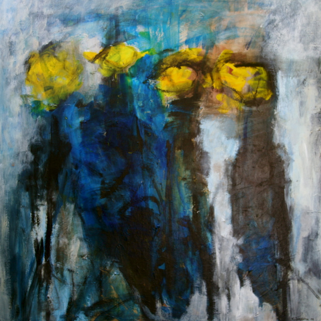 Mijn werken beschouw ik als muziek, voor de uitleg ervan zijn geen woorden nodig. Door middel van de vormen en kleuren vertelt elk schilderij een eigen verhaal. Een ieder die er naar kijkt kan er zijn eigen betekenis aan geven.