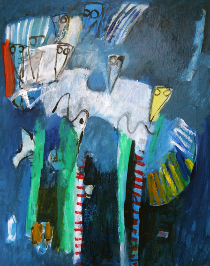 Mijn schilderijen komen tot stand door uit te gaan van een bepaald idee, of een bepaald beeld dat ik voor ogen heb. Soms ga ik alleen uit van bepaalde vormen en kleuren.