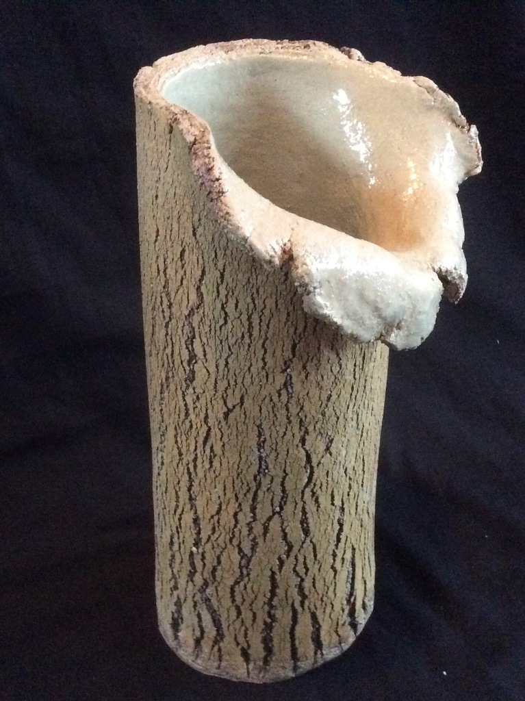 Een grote vaas ,met oxides bewerkt,en met een binnenkant van glazuur