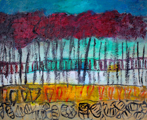Abstract Modern Landscape Paper Figurative Expressionistic People Zeefdruk Colorful Original Composition Lyrical Silkscreen Printmaking