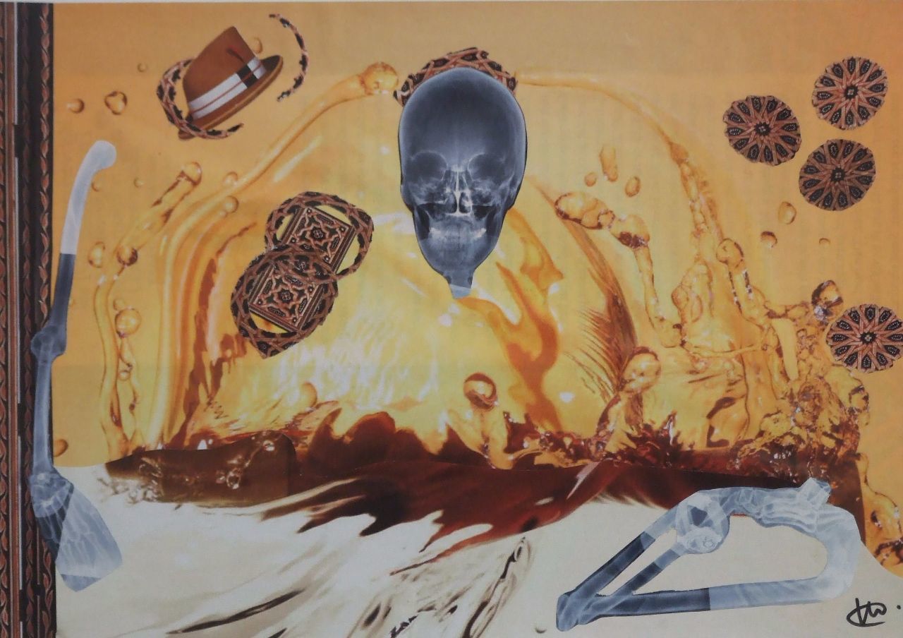 Ik maak papieren collages. Hiervoor gebruik ik tijdschriften, bij voorkeur de meer glossy uitgaven. Ik volg mijn intuïtie en gebruik mijn verstand bij het oplossen van 'problemen' in de verbinding van de papieren onderdelen.