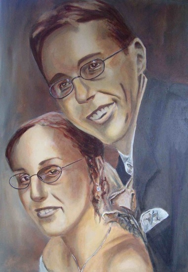 Portret van Pièrre en Murielle; geschilderd op een 3D doek. Het is op een andere manier geschilderd dan de andere portretten omdat deze stijl hun voorkeur had. Werk in opdracht.