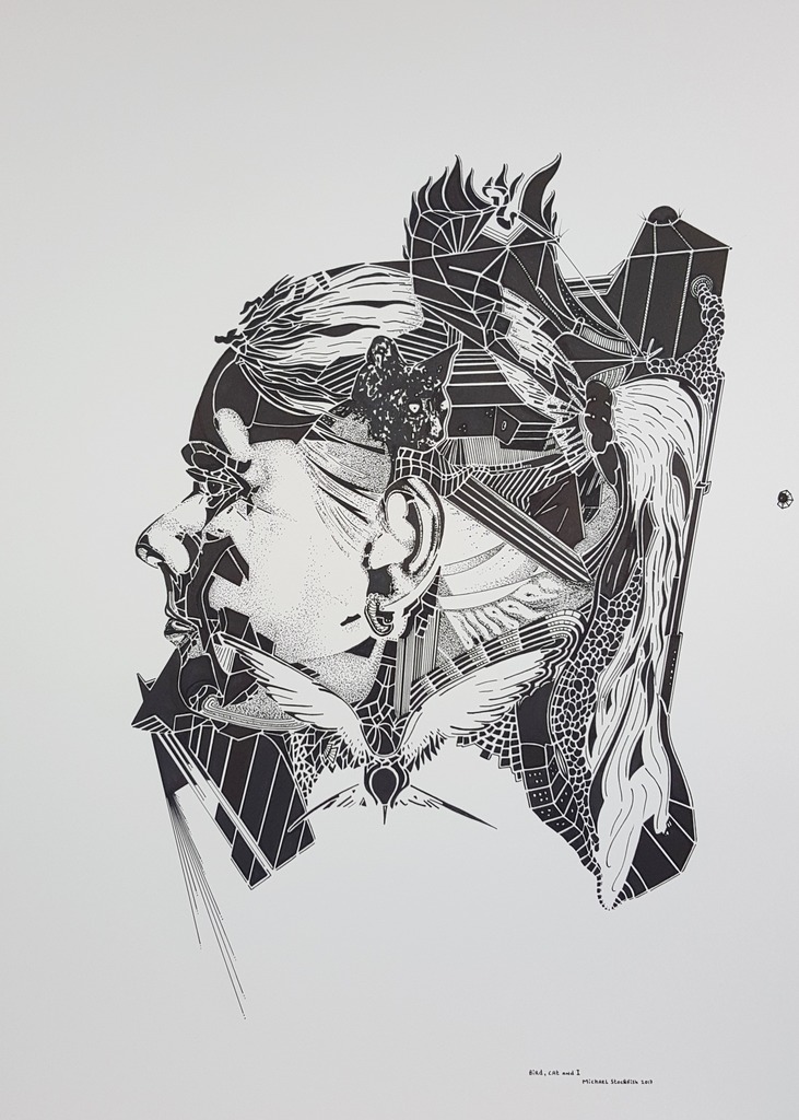Vogel Kat Tekening Inkt Bird Cat Michael Ink Stockfish