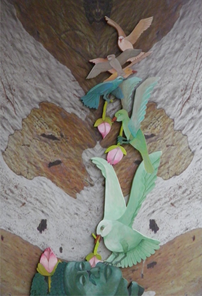 Boeddha Vogels Lotusbloemen Achtergrond Van Boombast (foto)