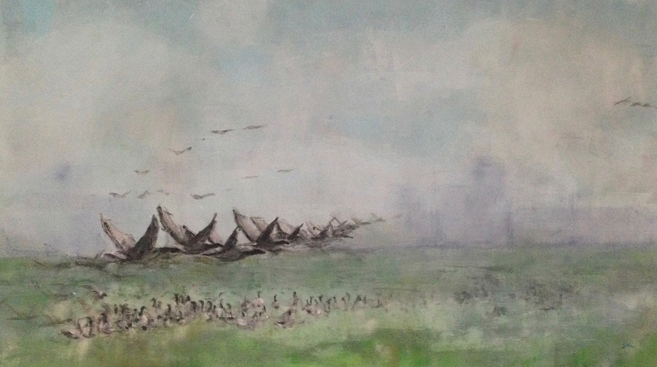 Ganzen in mistig weer.