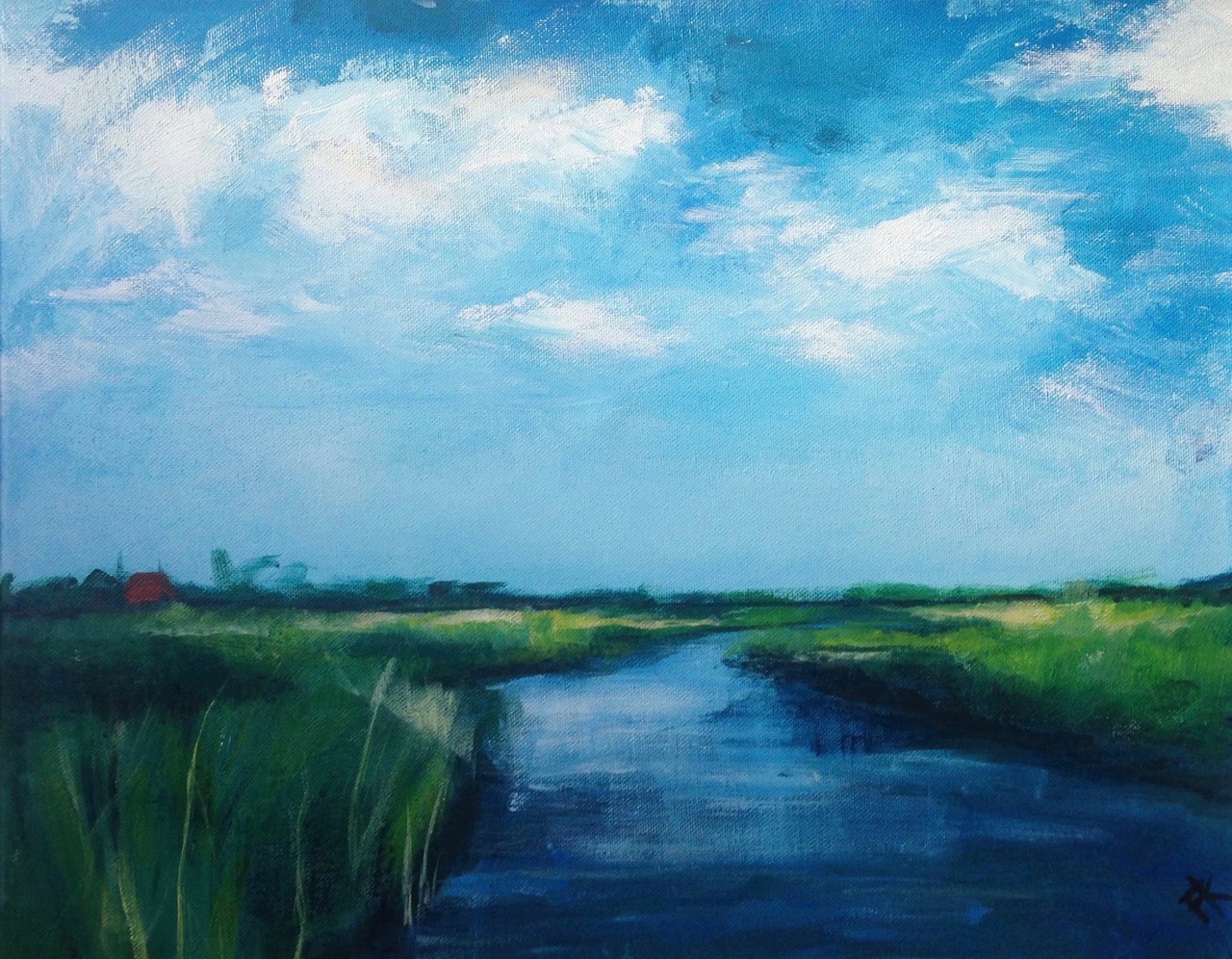 water, weiland en altijd ergens een rood dak.