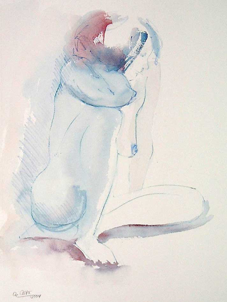 20041108 Ongekleed model vrouw in aquarel en kleurpotlood