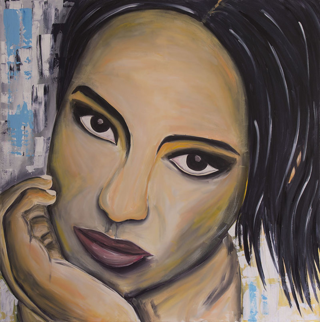 Schilderij Modern Vrouw Portret Gezicht Woman Portrait Painting Beautiful Mooi Beauty Face Schoonheid Cultuur Okergeel Culture America Brazilië South Brazil Aantrekkelijk Ocher Zuid-amerika