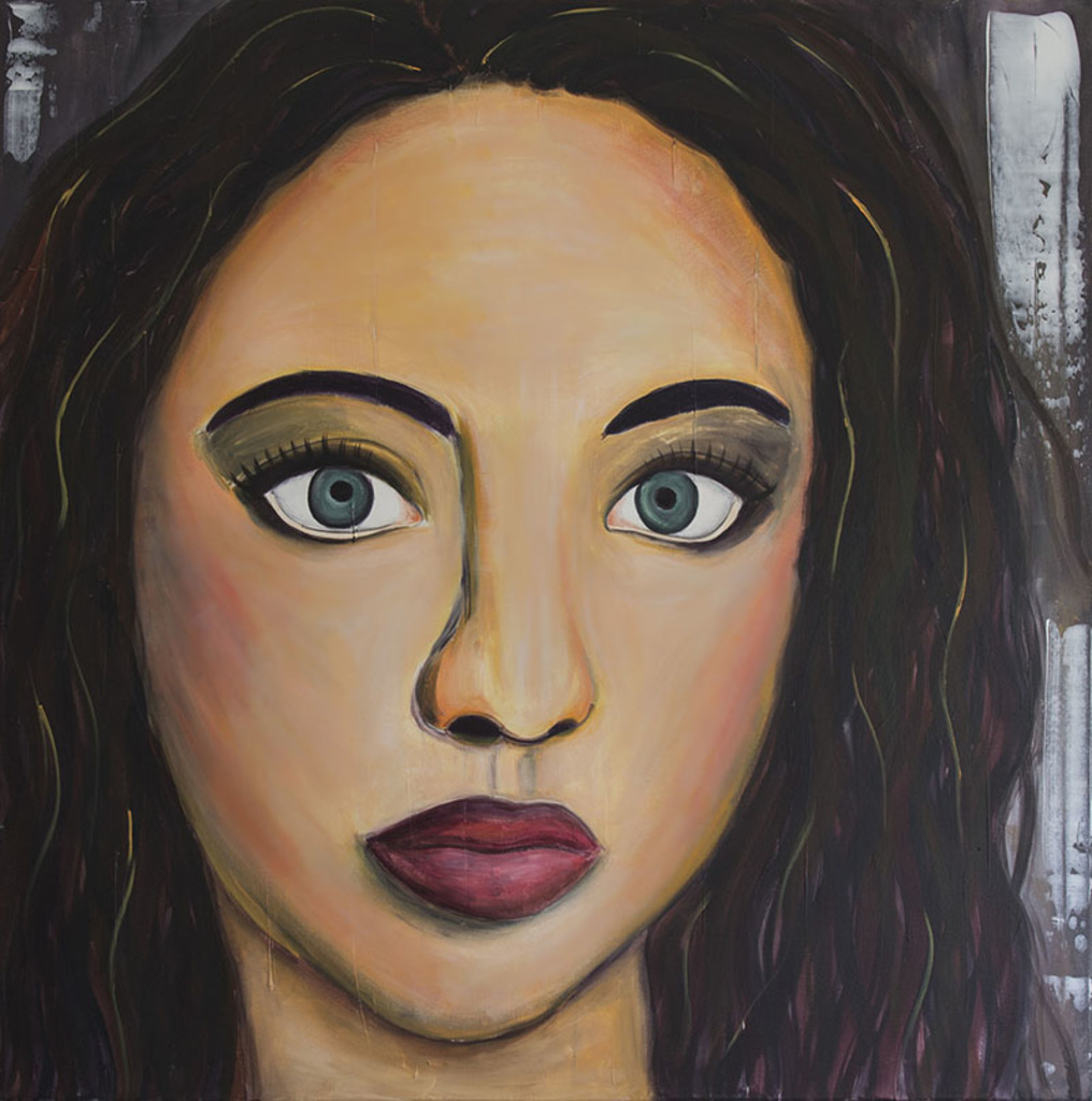 Modern schilderij van een Colombiaanse vrouw. De jonge vrouw uit Zuid-Amerika is geschilderd met acrylverf. De kleur van het gezicht is opgezet met natuurtinten als basis. Je proeft de colombiaanse sfeer in het schilderij.