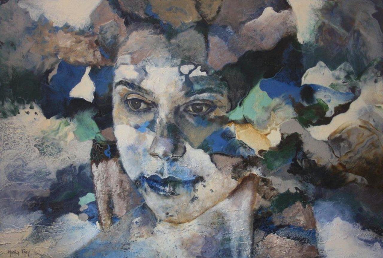 Marly Freij maakt grote kleurrijke, maar ook meer ingetogen schilderijen in gemengde techniek, met name sferische landschappen en abstracte composities