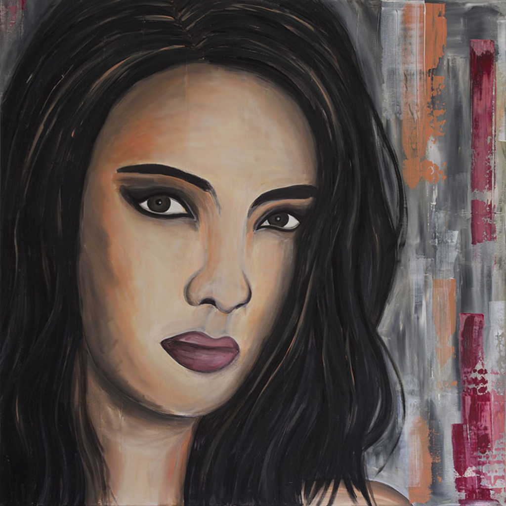Schilderij Painting Art Modern Rood Red Oranje Orange Vrouw Woman Portret Portrait Gezicht Beautiful Mooi Face Schoonheid Cultuur Peru Culture Nationality Southamerica Largepainting Decorationhome Homestyling