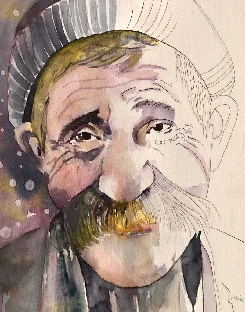 Portret Man Aquarel Snor