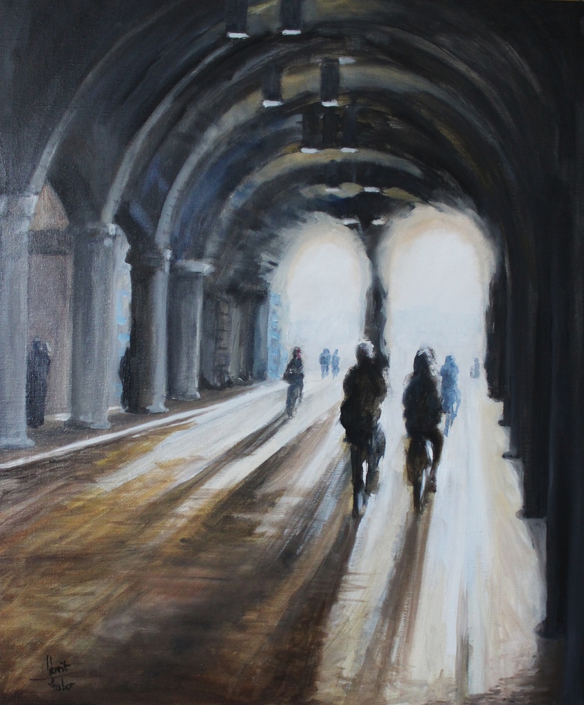 Het licht zuigt fietsers op onder het Rijksmuseum.