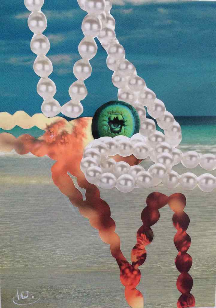 Ik maak papieren collages. Hiervoor gebruik ik tijdschriften, bij voorkeur de meer glossy uitgaven. Ik volg mijn intuïtie en gebruik mijn verstand bij het oplossen van 'problemen' in de verbinding van de papieren onderdelen.