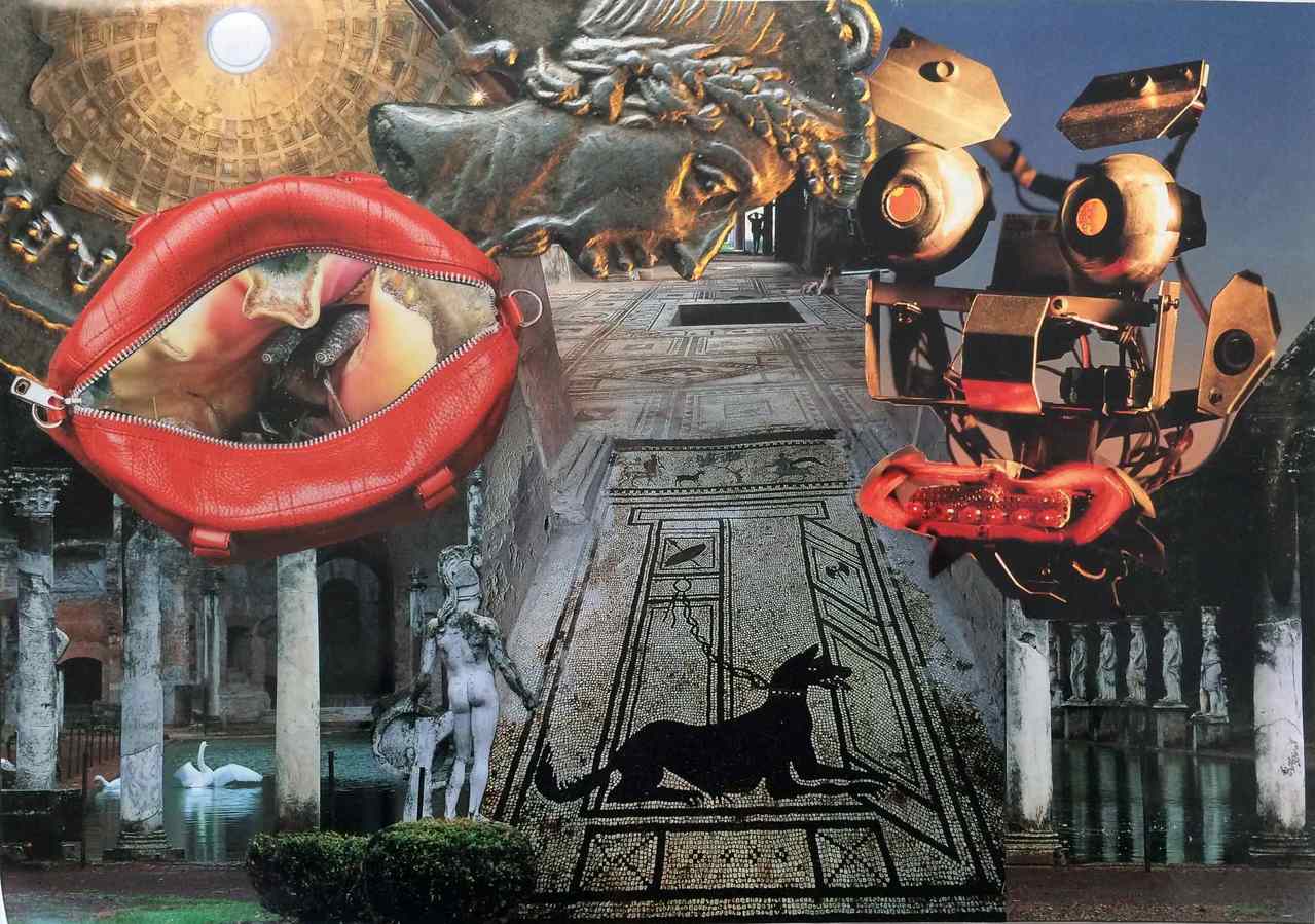 Ik maak papieren collages. Hiervoor gebruik ik tijdschriften, bij voorkeur de meer glossy uitgaven. Ik volg mijn intuïtie en gebruik mijn verstand bij het oplossen van 'problemen' in de verbinding van de papieren onderdelen.