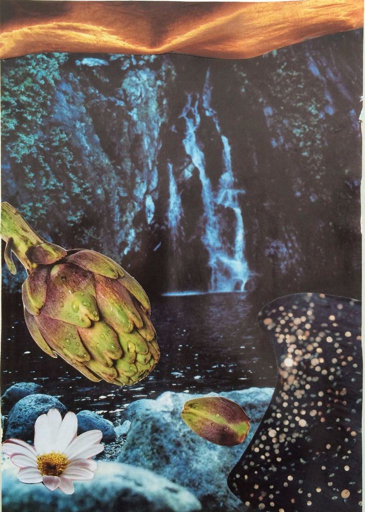 Surreeel Modern Emotie Spiritueel Bloemen Kleurig Papier Collages Karton Doek Bladeren Flow Met Verhalend Collage Design Papierkunst Sfeer Spiegel Opdracht Loslaten Vrij Bewust Inzicht Positief