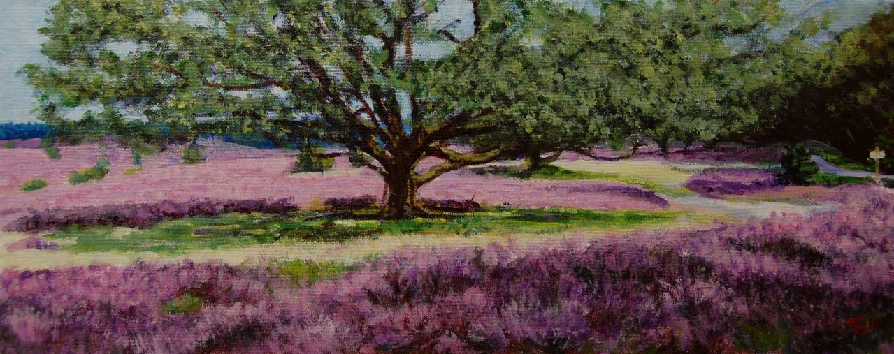 Bloeiende dopheide op het Herikhuizerveld Posbank Veluwezoom. Prijs is inclusief lijst.