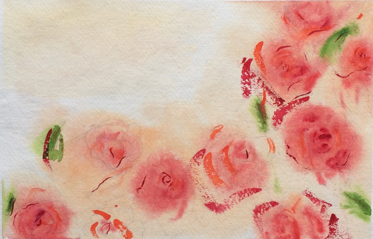 Lekker los werk, je ziet de schetslijnen nog, tevens een van mijn eerste rozenwerken.
