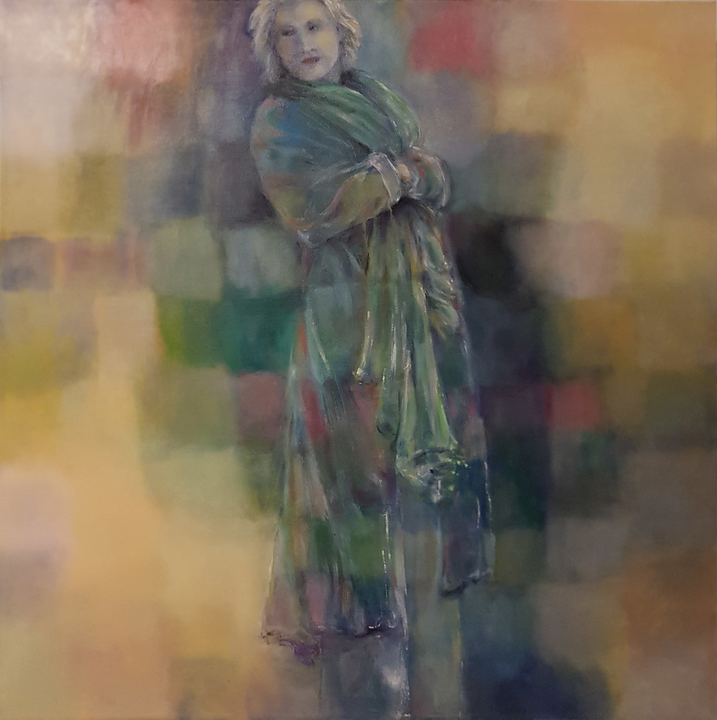Schilderij Kleurrijk Olieverf Kleur Vlakken Mensfiguur Kimono Takketé