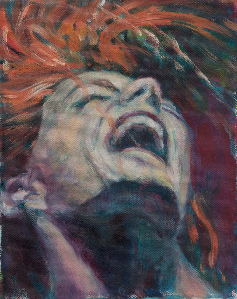 Schilderij Oranje Expressief Portret Kleurrijk Olieverf Mens Artiest Zangeres Uitbundig