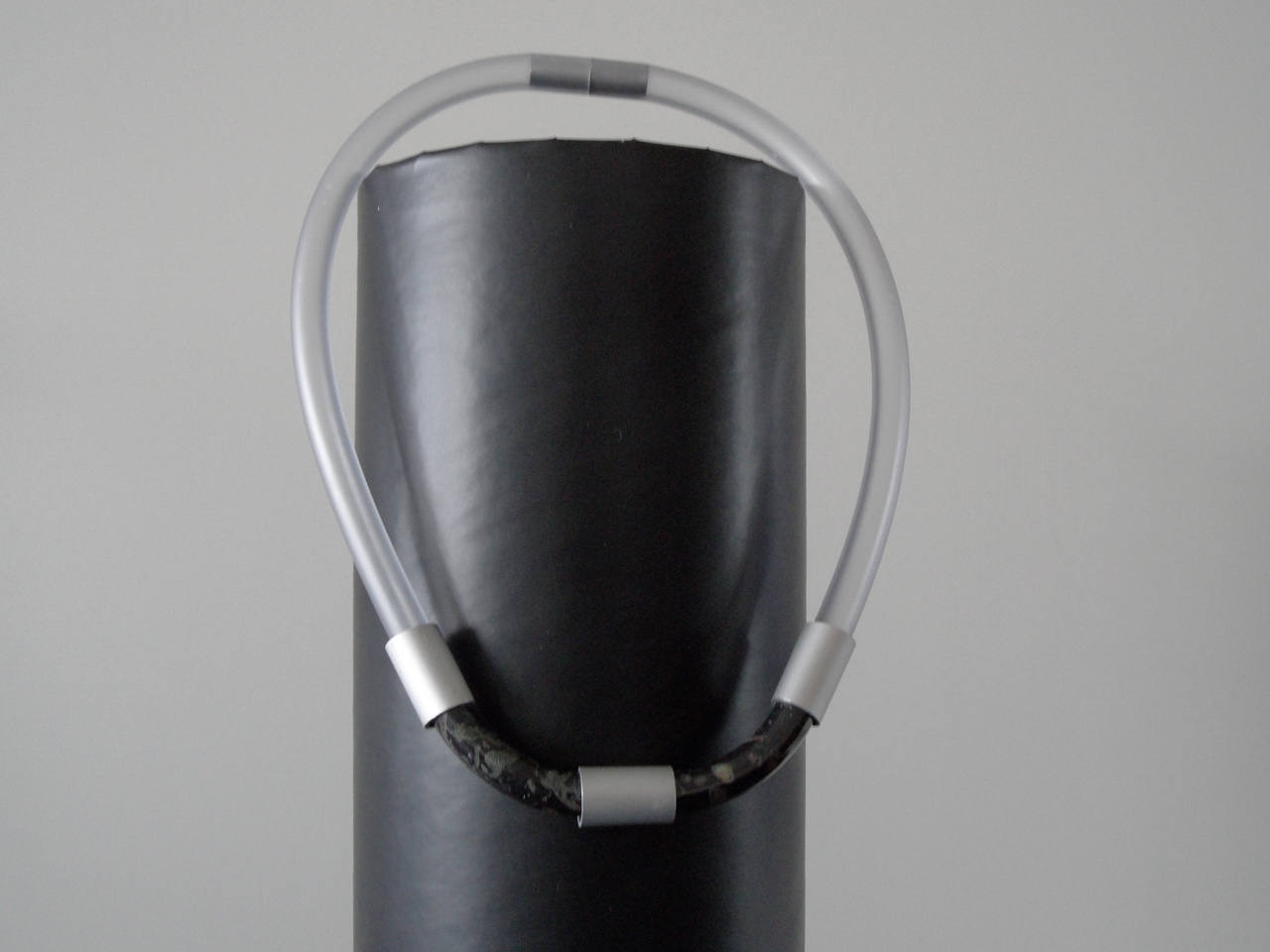 stoer en elegant sieraad van onyx, aluminium en kunststof