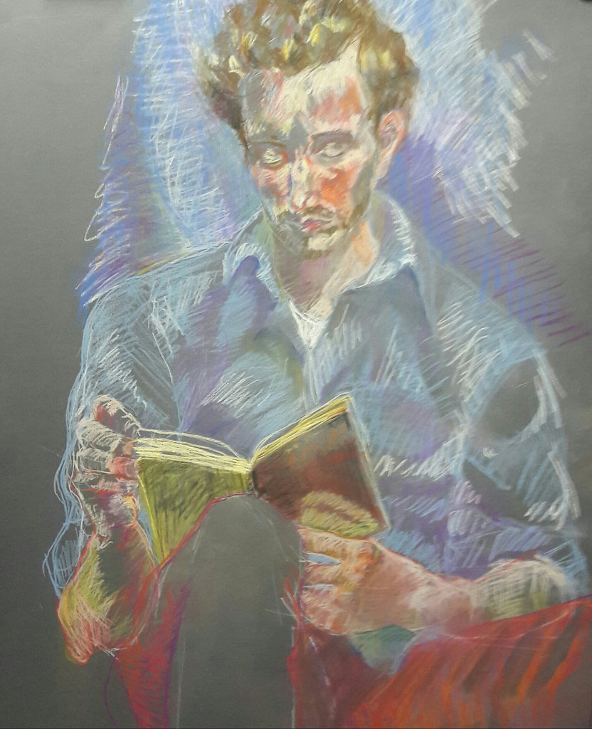 Lezende jongen pastelpotlood
