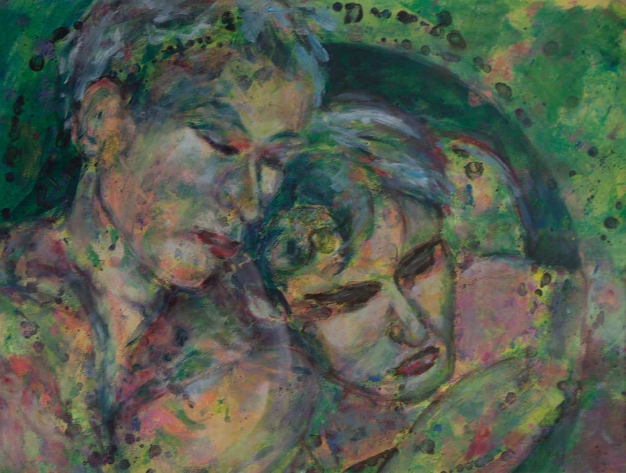 Schilderij Mensen Mixed Media Papier Valentijn Dansers Verbonden Kleurrijk