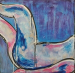 Serie TWO:Open&Closed CLOSED Geinspireerd door de TV serie, opzoek naar Picasso, heeft Sheila een serie geschilderd die, hoe kan het ook anders, emoties weergeven in een minimale weergave. Closed: gesloten verdriet verlegen denkend