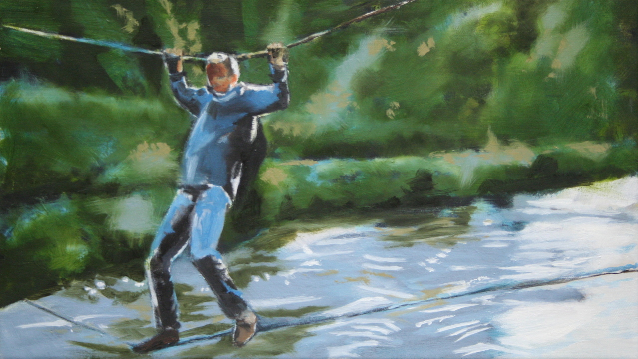 De mens geplaatst in een setting trekt mijn aandacht en nieuwsgierigheid. Mijn uitgangspunt bij het maken van mijn huidige schilderijen is de spelende mens. De weergave van de ruimte met zijn attributen zoals de belichting, een natuurlijke omgeving of een in cultuur gebrachte omgeving, brengen mij opnieuw in contact met die ervaren werkelijkheid. Wat mij bezighoudt is dat het geschilderde zich gaat verbinden en in de plaats komt te staan van de opgedane indrukken en gevormde herinneringen.