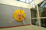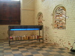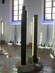 In de metalencontructie van de installatie hangt Leisteen met daar doorheen een blauwe TL-tube. Daarnaast hangen bladzijden uit een Latijns woordenboek. Onderop liggen boeken.