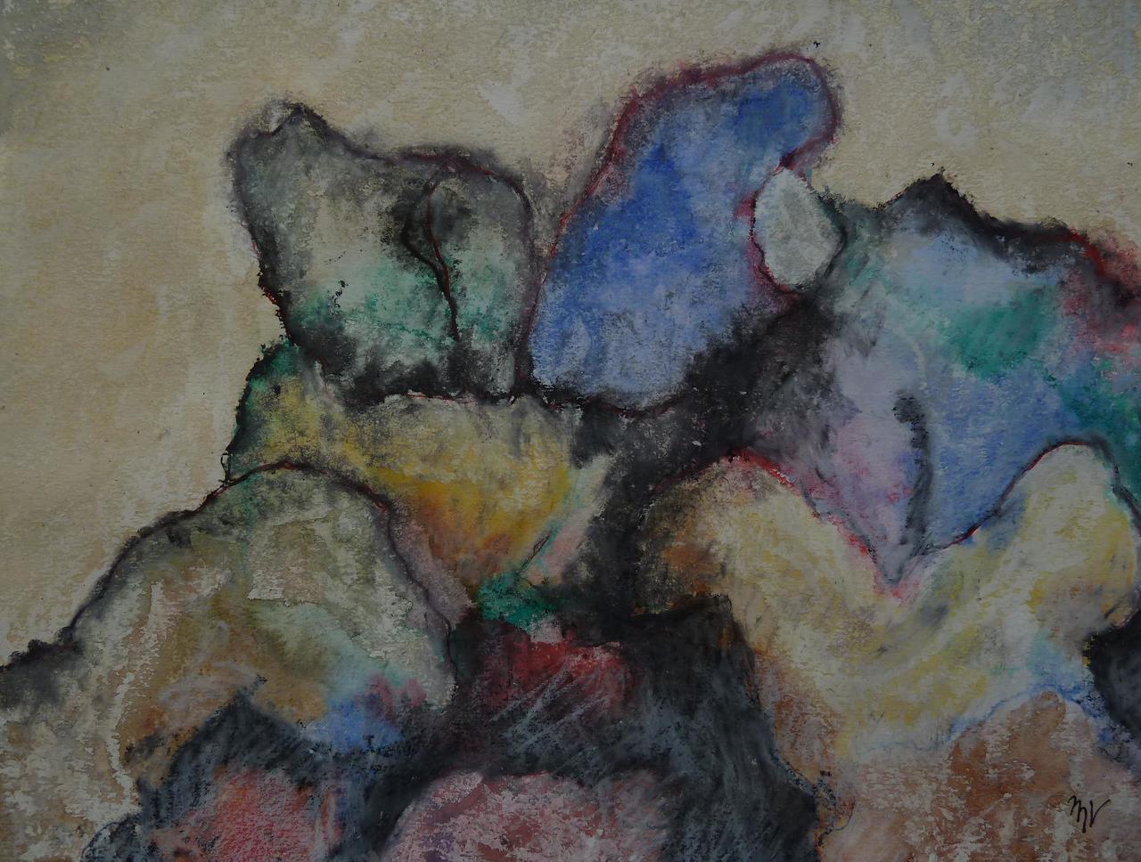 Mijn onderwerpen vind ik zowel in mijzelf als in mijn omgeving. Ik begin te werken vanuit de waarneming en laat deze dan langzamerhand steeds meer los.