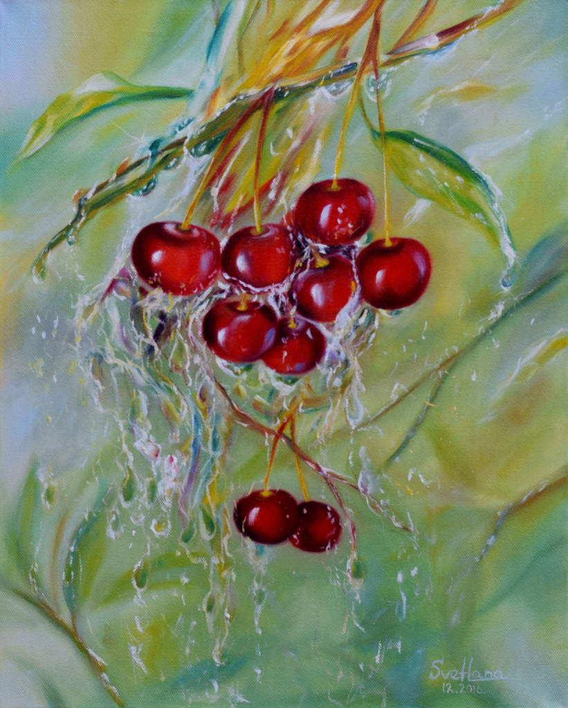 Canvas Natuur Stilleven Regen Kersen Olieschilderij