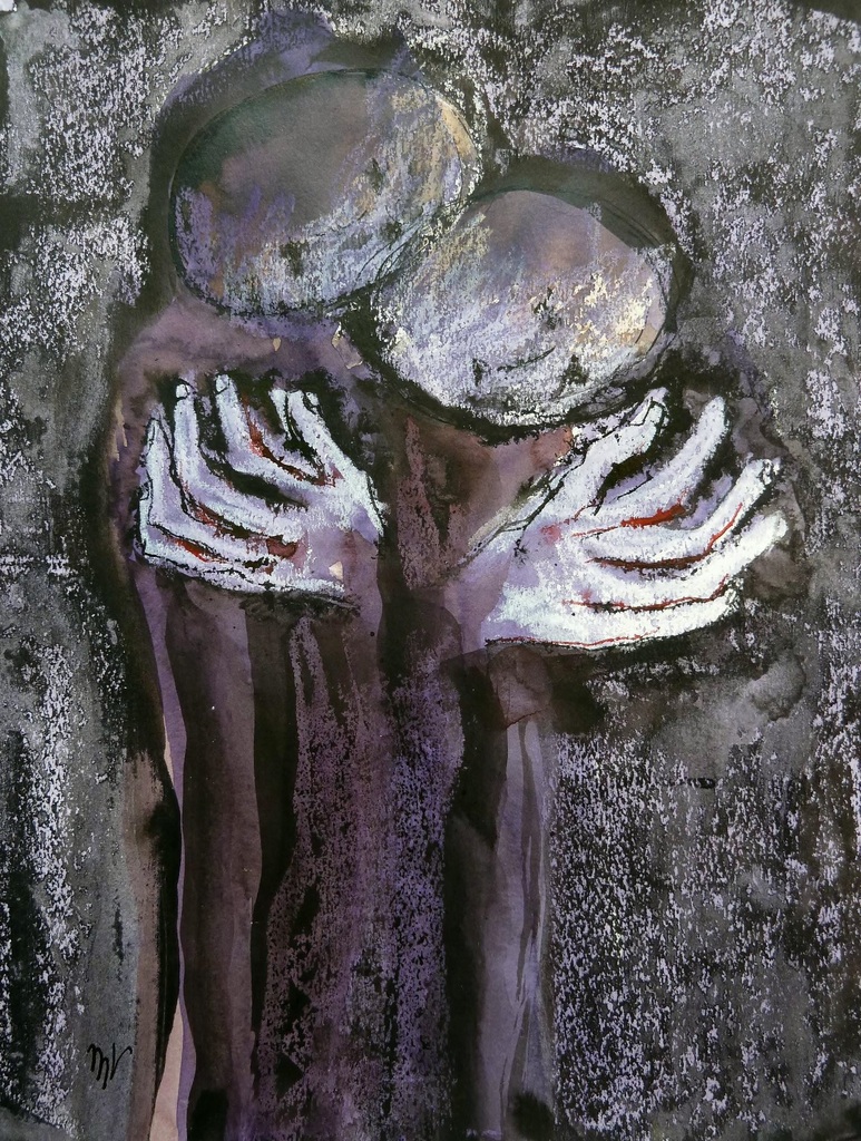 Mijn onderwerpen vind ik zowel in mijzelf als in mijn omgeving. Ik begin te werken vanuit de waarneming en laat deze dan langzamerhand steeds meer los.