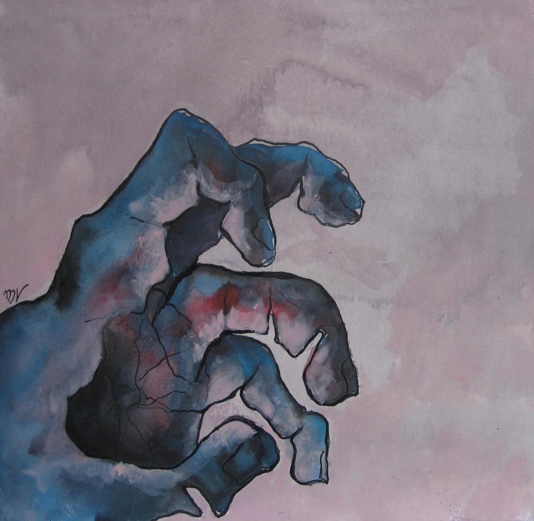 Mijn onderwerpen vind ik zowel in mijzelf als in mijn omgeving. Ik begin te werken vanuit de waarneming en laat deze dan langzamerhand steeds meer los.