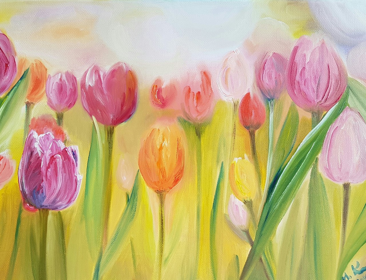 Zonnig gebied van tulpen. Het schilderen van tulpen in hun verschillende vormen en kleuren verveeld nooit, ze zijn altijd mooi. Bloemen Olieverfschilderij op canvas Tulpen is een heldere schilderij voor huisdecoratie (woonkamer, slaapkamer of keuken), welkom aanvulling om uw huis gezellig te maken. De goede kwaliteit van olieverf en speciaalvernis laat u dit mooie uitzicht tulpen voor vele jaren genieten. Heeft geen speciale zorg nodig, advies - blijf weg van directe zonlicht. Het beeld heeft geen geur en kan gebruikt worden in een kamer van een kind. Schilderij is klaar om te verzenden en kan met of zonder frame worden gebruikt (is niet inbegrepen). Schilderen is een origineel werk en heeft een handtekening van de kunstenaar. Kan ook een perfect cadeau voor hard-to-buy-voor mensen zijn.