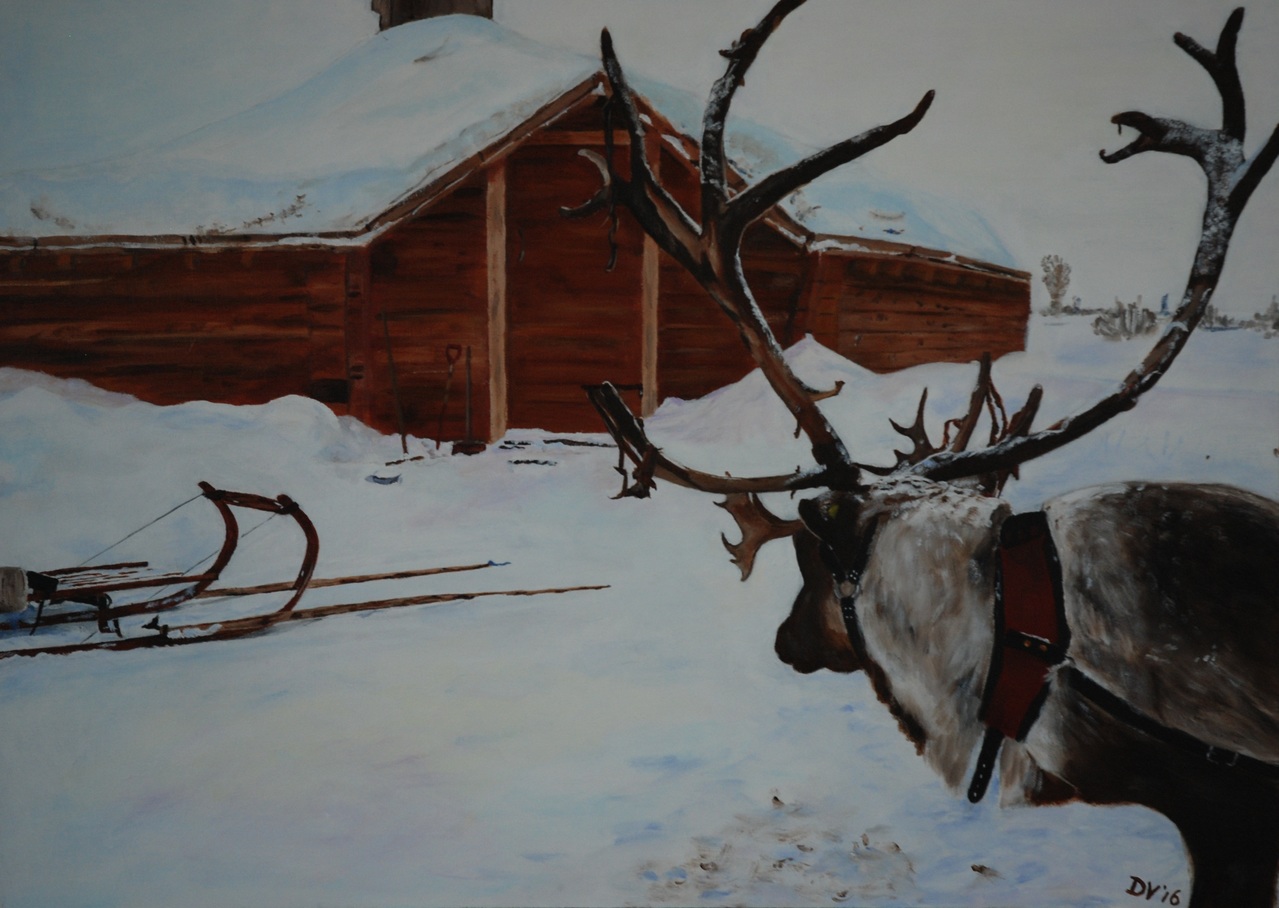 Rendier in Noorwegen, acryl op ecopanel