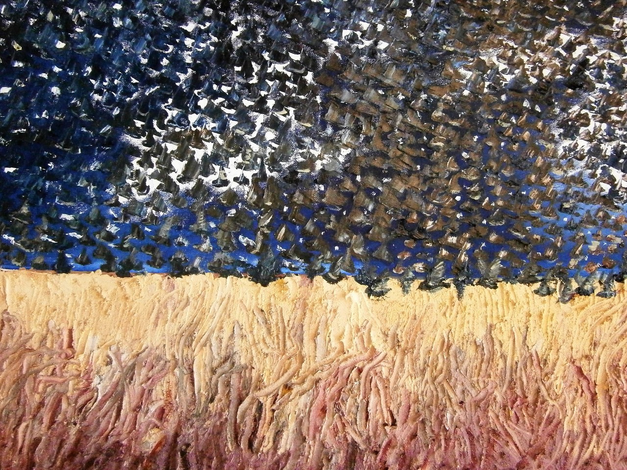 Korenveld met spreeuwen
