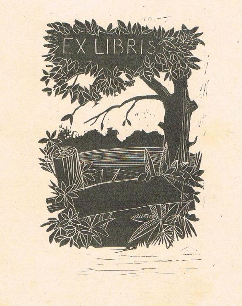 Ex libris met boom en hek
