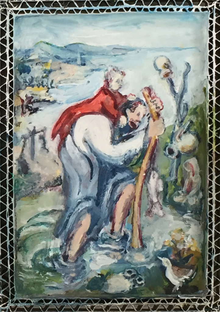 vrij naar Jheronymus Bosch "De heilige Christophorus" 1450